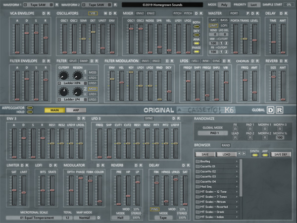 - 2 Oscillators with both multi-sampled cassette sampled sound and single cycle Waveforms (100 selections in total)