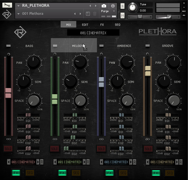 PLETHORA是用于KONTAKT的最先进的电影循环模块,包含350种不同的套件,可以在四个类别(低音,旋律,氛围和凹槽)中串联播放。