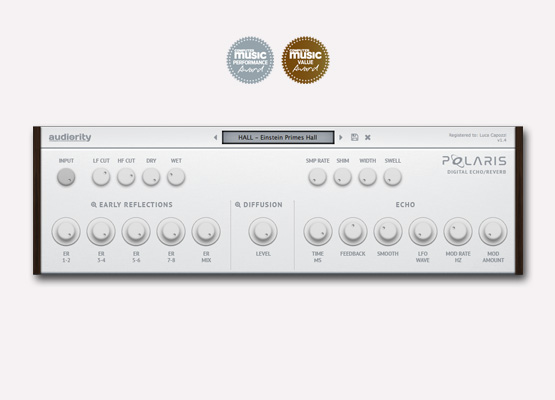 Polaris is an echo/reverb plugin inspired by early hardware digital reverbs of the late 1970s (like the Ursa Major SST-282) and able to provide echo, ambience and reverb out of a single multitap delay line.